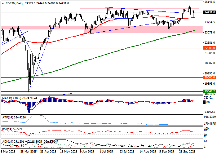 Niemiecki DAX skończył sesję wtorkową spadkiem o 0,62 procent. Rozdanie kryje w sobie dynamiczniejsze cofnięcie po porannym otwarciu luką, która nie została zakryta i w dużej mierze przesądziła o spadkowym wyniku dnia. W istocie, pierwsza połowa sesji została zdominowana przez podaż, gdy w drugiej popyt szukał swojej szansy budując na obronie wsparcia na psychologicznej barierze 24000 pkt. Wykres CFD pokazuje, iż częścią układu sił było spotkanie ze średnią z 50 sesji, która zadziałała w roli wsparcia. Efektem technicznym jest próba podtrzymania gry na górnym ograniczeniu wielomiesięcznej konsolidacji, które zostało ostatnio wzmocnione w roli oporu. Zawahanie byków na górnym ograniczeniu konsolidacji – i faktyczne fałszywe wybicie – nie było zaskoczeniem dla graczy obserwujących dywergencje wskaźników z wykresami oraz sygnały wykupienia rynku. W tym ujęciu, obecne cofnięcie, jak i ewentualne pogłębienie korekty stają się okazją do schłodzenia wskaźników, ale też efektem nieudanej konfrontacji z kluczowymi oporami i psychologiczną barierą 25000 pkt. Niemniej, próba wybicia z konsolidacji w strefie 25000-23000 pkt. oznacza, iż gra toczy się o zbudowanie potencjału zwyżki o szerokość układu – około 2000 pkt. - a więc w rejon 27000-26500 pkt. Dlatego, gracze próbujący sprzedać opory w rejonie 25000-24500 pkt. i liczący na test rejonu 23000 pkt. będą operowali z szybko realizowanymi zleceniami stop-loss.
