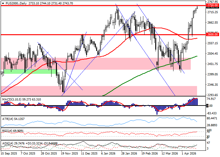 Kontrakt na indeks Russell 2000 skończył sesję czwartkową zwyżką o 0,2 procent, ale wzrostu starczyło do wyznaczenia nowego najwyższego zamknięcia w historii. W praktyce, do pokonania zostało ATH w perspektywie intraday. Spojrzenie na wykres CFD pozwala odnotować, iż rynek testuje właśnie opory w rejonie 2750 pkt., których połamanie odbierze podaży ostatni opór techniczny na wykresie i przesunie uwagę na bariery psychologiczne. Popyt nie może też przegrać tygodnia, w którym kontrakt rośnie właśnie o 3,7 procent, co przełoży się na czwarty tydzień zwyżek w serii. Ryzykiem w tym układzie jest dynamika podejścia, która musi owocować ostrzeżeniami przed wykupieniem rynku, więc trwałe połamanie 2750 pkt. nie jest przesądzone. Wręcz, należy oczekiwać jakiejś kontry podaży i realizacji zysków z ruchu, który liczony od dołka z 31 marca wyniósł przeszło 13 procent. Szersza perspektywa wspiera popyt momentum wzrostowym obrazowanym przez relację ceny z MA50 i MA200 oraz stale pozytywną relacją średniej z 50 sesji ze średnią z 200 sesji.