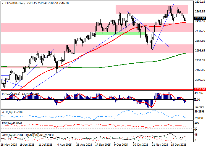 Kontrakt na indeks Russell 2000 skończył 2025 roku zwyżką o 11 procent, ale cztery finałowe sesje grudnia przyniosły serię przeceny. Spadkowa seria odebrała pochodnej 2,6 procent, gdy otwarcie stycznia przynosi zwyżkę o 0,8 procent. Efektem jest próba wygaszenia impulsu spadkowego, który zdominował końcówkę grudnia. Obraz techniczny pozostaje bez zmian. Rynek konsoliduje się między szczytem hossy i ostatnim dołkiem, szukając kształtu konsolidacji. Dla techników ważne pozostaje, iż rynek zagrał korektę ostatniej fali wzrostowej, która skierowała uwagę na ponownie testowane wsparcia w rejonie 2450 pkt., gdzie połamane opory i średnia z 50 sesji stały się punktem gry o wygaszenie korekty. W praktyce, technicy będą czekać na kolejną konfrontację wykresu z jakąś barierą techniczną, która pozwoli policzyć się stronom rynku i ocenić układ sił po ostatnim wzroście zmienności i świątecznym spadku płynności, szczególne dotkliwym w przypadku spółek o małej kapitalizacji składających na indeks bazowy.