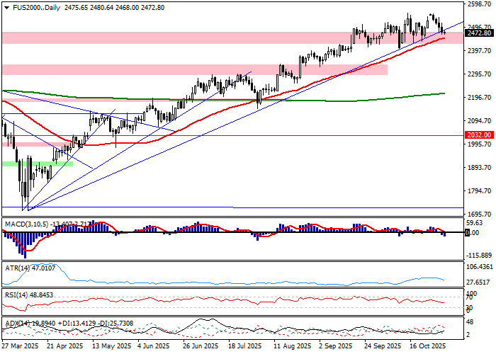 Sesja czwartkowa na rynku kontraktów na indeks Russell 2000 skończyła się spadkiem o 0,7 procent, gdy notowania piątkowe próbują redukować wczorajszą stratę. Niemniej, tydzień zostanie raczej wygrany przez podaż, ale w perspektywie miesięcznej rynek jest ciągle w grze o szóstą zwyżkę w serii. Technicznie patrząc finał miesiąca jest już jednak konsolidacyjny, co potwierdza wykres CFD. W lokalnym obrazie technicznym dominuje cofnięcie związanie jest zawahaniem popytu w rejonie szczytu hossy i ATH. Układ niesie ryzyko wejścia wykresu w miniformację podwójnego szczytu, ale na chwilę obecną nie zagraża wsparciom na połamanych oporach. Sumarycznie więcej tu konsolidacji niż skutecznego ataku na rejon 2500-2450 pkt. oraz linię trendu hossy, która odpowiada za zwyżkę rynku o około 50 procent. Pozytywem konsolidacji jest chłodzenie wskaźników, które wysokimi położeniami i dywergencjami osłabiały szanse popytu na skuteczną kontynuację zwyżki i ruch niosący rynek nad 2500 pkt. Niestety, stale trudno mówić o zanegowaniu ostrzeżenia, iż wybicie nad opory, na których łamały się dwa poprzednie rynki byka może okazać się pułapką hossy. Niemniej, obserwowana wcześniej dynamika wzrostów i przeszłe sukcesy techniczne popytu stale zmuszają do zakładania, iż potrzebna i oczekiwana korekta nie musi oznaczać końca hossy. Kolejne obrony trendu wymuszają też podtrzymanie założenia, iż łapacze końca zwyżki grają przeciwko trendowi i momentum rynku.