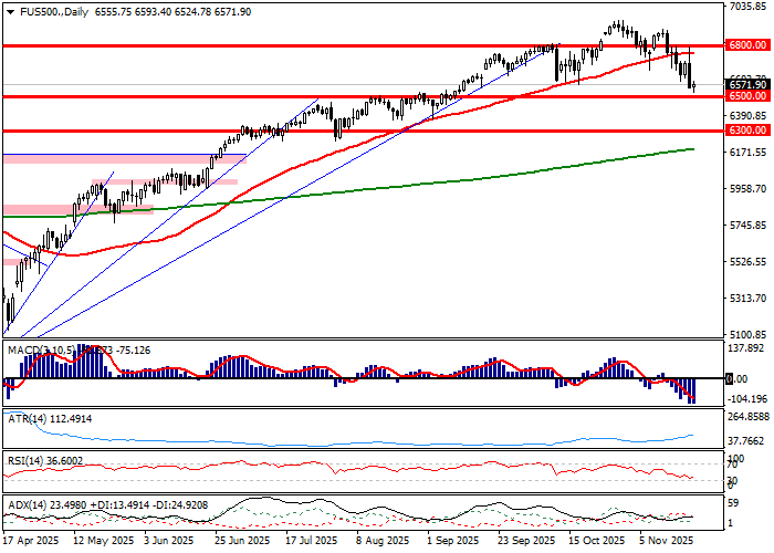 Sesja czwartkowa skończyła się spadkiem indeksu S&P500 o 1,56 procent, gdy notowania piątkowe pochodnych przynoszą próbę stabilizacji. Niemniej, strata kontraktów w bieżącym tygodniu przekracza 3 procent, gdy indeks traci 2,9 procent. W praktyce indeks jest w grze o najgorszy tydzień od początku kwietnia, a więc ogłoszenia przez prezydenta USA nowego reżimu celnego, co zaowocowało wówczas spadkiem o 9 procent i faktycznym wycofaniem się Donalda Trumpa z programu prowadzenia ceł odwetowych. Warto odnotować, iż listopadowy spadek S&P500 sięga już 4,4 procent, co utrzymane do końca miesiąca dałoby najgorszy miesiąc od marca. Technicznie patrząc zarówno indeks, jak i kontrakty przebiły strefy wsparcia w rejonie 6550 pkt. i znalazły się w konfrontacji z psychologiczną barierą 6500 pkt. Wykres CFD pokazuje, iż popyt kontruje na wsparciu w kontekście schłodzenie szybkich oscylatorów, ale momentum oglądane przez relacje wykresów ze średnimi z 50 sesji stale ostrzega przed łapaniem końca korekty bez ukształtowania się poważniejszych sygnałów jej wyczerpania. Warto pamiętać, iż obecny spadek S&P500 od szczytu hossy w perspektywie intra wyniósł ciągle ledwie 5,6 procent, co nawet nie spełnia definicji korekty technicznej, za którą uznaje się cofnięcie o więcej niż 10 procent.