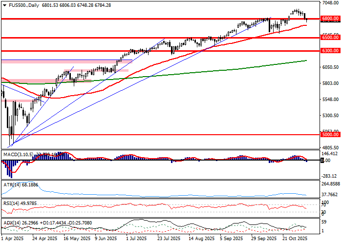 S&P500 skończył sesję wtorkową spadkiem o około 1,2 procent. W przypadku kontraktów można mówić dodatkowo o pogłębieniu przeceny po zamknięciu rynku kasowego, która znajduje przedłużenie na notowania środowe. Efekty widać na wykres CFD, który wyrysował dynamiczny czarny korpus i naruszył psychologiczne i techniczne wsparcie w rejonie 6800 pkt. Kreślona dziś świeca dzienna wskazuje, iż pochodne próbują zbudować odbicie, ale popyt nie ugrał niczego poza dolnym cieniem. Kontrakt ostrzega też, iż indeks bazowy może być w grze o zanegowanie wybicia z konsolidacyjnej półki, której symboliczną górną granicą był rejon 6700 pkt. W praktyce, pojawia się ryzyko zanegowania wybicia z układu, który zachęcał d spoglądania w rejon 6900 pkt. Wówczas nie można będzie wykluczyć cofnięcia nawet w rejon 6500 pkt. Tak głębokie cofnięcie może jawić się jako groźne, ale zejście w rejon 6500 pkt. będzie ciągle cofnięciem indeksu o mniej niż 5 procent - licząc od ATH intraday w rejonie 6820 pkt. – co trudno nazwać mocnym spadkiem. Korekta jawi się jako zrozumiała, gdy uwzględni się wcześniejsze sygnały na wskaźnikach, które dywergowały z wykresami i ostrzegały przed małym potencjałem zwyżki bez korekty. Łapanie dołka spadku w tym układzie sił jawi się jako jałowe, ale gracze szukający swojej szansy będą zmuszeni operować z blisko stawianymi zleceniami obronnymi.