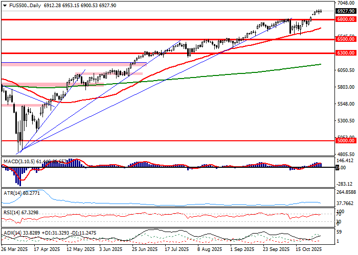 Sesja środowa skończyła się przesunięciem S&P500 o -0,3 pkt., co na poziomie zmiany procentowej daje spadek, który można uznać za wirtualny. Niemniej, cofnięcie odebrało bykom szansę na wykreślenie nowego ATH na poziomie zamknięcia sesji, gdy w perspektywie intra nowy rekord zalega w rejonie 6920 pkt. Notowania czwartkowe pochodnych przynoszą zwyżkę o 0,1 procent, ale spojrzenie na wykres CFD pozwala odnotować, iż rynek pozostaje w lokalnej konsolidacji, której doskonałym obrazem jest zestaw świec o skromnych korpusach. W efekcie zwyżka w perspektywie tygodniowej o około 1,5 procent – indeks i kontrakty – musi być czytana jako zmieniająca się w zadyszkę byków. Na dziś jednak, na wykresach nie ma grama sukcesu podaży, a obraz techniczny pozostaje bez zmian. Rynek jest w grze o spotkanie z psychologicznym oporem na 7000 pkt., gdy indeksowi brakuje około 1,6 procent do testowania 7000 pkt. Uwzględniając zmienność - mierzoną ATR z 14 sesji – rynek kasowy jest dwie sesje od testowania kluczowego oporu. Spojrzenie na wykres CFD pozwala odnotować kontynuację ruchu po pokonaniu oporów w rejonie 6700 pkt. i wybicie z konsolidacji, które zbudowało potencjał zwyżki w rejon 6900 pkt. Problemem pozostają wskaźniki, których wysokie położenia znów będą zachęcały podaż do kontry w rejonie 7000 pkt., ale na chwilę obecną na wykresach nie ma przestrzeni do gry po krótkiej stronie rynku, więc gracze próbujący sprzedać 7000 pkt. będą operowali z blisko stawianymi zleceniami obronnymi.