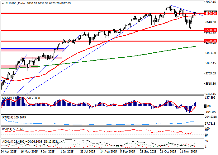 Sesja środowa skończyła się zwyżką indeksu S&P500 o 0,69 procent. W czwartek kontrakty operują dziś w kontekście niskich wolumenów i braku zmienności, co zrozumiałe przy braku sesji na rynku kasowym. Efekty widać na wykresie CFD, który kreśli skromną szpulkę. Niemniej wykres CFD pokazuje też, iż rynek naruszył linię korekty i znalazł się nad psychologicznym oporem w rejonie 6800 pkt., gdy indeks bazowy zakończył sesję środową w rejonie 6813 pkt. W praktyce otwarta została droga do testowania szczytów hossy i ATH. Popyt nie jest bez szans w grze o marsz na ATH dzięki schłodzeniu wskaźników i powrocie nad średnią z 50 sesji, ale już teraz można powiedzieć, że potencjalne spotkanie z ATH będzie grane przy trudniejszym od obecnego położeniu wskaźników. Dlatego gracze odpowiadający na ewentualne przesilenie na linii korekty będą w gotowości do szybkiej ucieczki z rynku.
