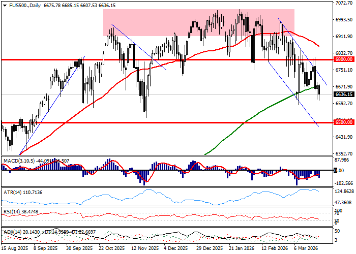 S&P500 skończył sesję czwartkową spadkiem o 0,27 procent. Spadek powiększył stratę tygodniową do 0,39 procent, co połączone z dzisiejszą przeceną futures sygnalizuje, iż podaż staje przed perspektywą wygrania trzeciego tygodnia w serii. Wykresy pokazują, iż zarówno kontrakt, jak i pochodne wykreśliły wczoraj nowe minima marcowej przeceny, więc stale można mówić o kontynuacji ruchu w ramach lokalnego impulsu spadkowego. Technicznie patrząc rynek porusza się w kanale spadkowym, który ustawił wykres w kolizji ze średnią z 200 sesji. Wsparcie na MA200 zostało złamane lub – ostrożniej mówiąc – naruszone, więc rynek musi szukać dodatkowych argumentów za wyczerpaniem fali spadkowej. Przed rynkiem staje zatem wybór między trwałym wybiciem nad górne ograniczenie dwutygodniowego kanału spadkowego lub trwałym przełamaniem średniej z 200 sesji. Pierwszy scenariusz – zwłaszcza poparty powrotem nad 6800-6750 pkt. - zachęci do potrzymania konsolidacji granej jeszcze przed wybuchem wojny, gdy przełamanie MA200 stanie się przyczynkiem do spekulacji o przymusie cofnięcia w rejon 6500 pkt. Wskaźniki wspierają scenariusz pierwszy, ale technicy nie będą chcieli wyprzedzać wydarzeń i zechcą czekać na konkretne fakty na wykresach.