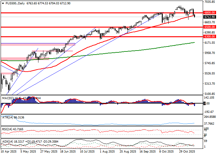 S&P500 spadł w czwartek o 1,66 procent, co przekłada się na najgorszą sesję od miesiąca. Notowania piątkowe pochodnych przynoszą kontynuację przeceny i spadek o 0,7 procent. W tym kontekście warto odnotować, iż indeks stale notuje pozytywne przesunięcie w perspektywie tygodniowej o 0,1 procent. Zachowanie rynku wskazuje, iż wczoraj doszło do załamania odbicia na pierwszych sesjach tygodnia, które były grane w modelu wygaszenia korekty. W praktyce można mówić o powrocie do gry w modelu korekcyjnym. Obraz techniczny sygnalizuje, iż wzrost złapał zadyszkę, gdy rynek szykował się do testu ATH, gdy indeksowi brakło do rekordu ledwie 50 punktów albo mniej niż 1 procent. W praktyce, stale obecny pozostał problem konieczności konfrontacji wykresów ze strefami oporów, które zaczynają się na 6900 pkt. i które można uznać za punkt zaczynający grę rynku ze strefą kończącą się na psychologicznej barierze 7000 pkt. Wczorajszy spadek – zwłaszcza przy dzisiejszej kontynuacji – będzie oznaczał skierowanie uwagi na wsparcia, które zalegają w rejonie 6650 pkt. zarówno w przypadku indeksu i kontraktów. Wskaźnikowo układ nie jest zły dla strony popytowej. Ewentualne cofnięcie w rejon wsparcia będzie grane przy mocno schłodzonych oscylatorach, więc popyt nie jest bez szans na wygaszenie korekty i powrót do gry z oporami w rejonie 6900-7000 pkt.