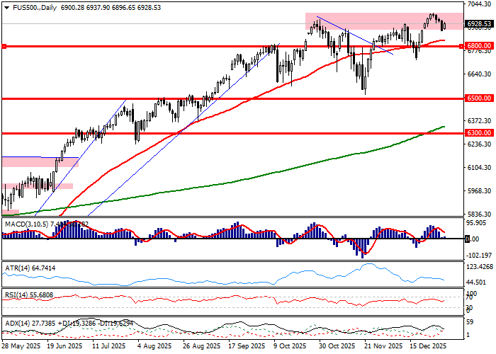 S&P500 skończył sesję środową spadkiem o 0,74 procent. Indeks rozciągnął spadkową serię na czwartą sesję z rzędu i na chwilę obecną w okresie znanym jako rajd Świętego Mikołaja spada o 0,93 procent. Niemniej, notowania pochodnych wskazują, iż rynek kasowy może zacząć rok zwyżką i luką odrobić połowę strat poniesionych na czterech sesjach przeceny. Technicznie patrząc układ pozostaje bez większych zmian. Indeks utrzymał kontakt z rekordem wyrysowanym w rejonie 6946 pkt., a nowy opór pozostaje w zasięgu popytu na pojedynczej sesji. To samo można powiedzieć o poziomie 7000 pkt., choć atak na psychologiczną barierę wymaga zwyżki o przeszło 150 punktów albo 2,26 procent. W szerszej perspektywie patrząc 7000 pkt. jawi się tylko jako opór psychologiczny, który wcześniej czy później zostanie złamany, ale wskaźniki sygnalizują, iż obecna konfrontacja może okazać się raczej powodem do liczenia się stron rynku niż szybkiego wyjścia nad opór. Dodatkowo, warto pamiętać, iż Wall Street realnie wróci do gry z okresu świątecznego dopiero na sesji poniedziałkowej.