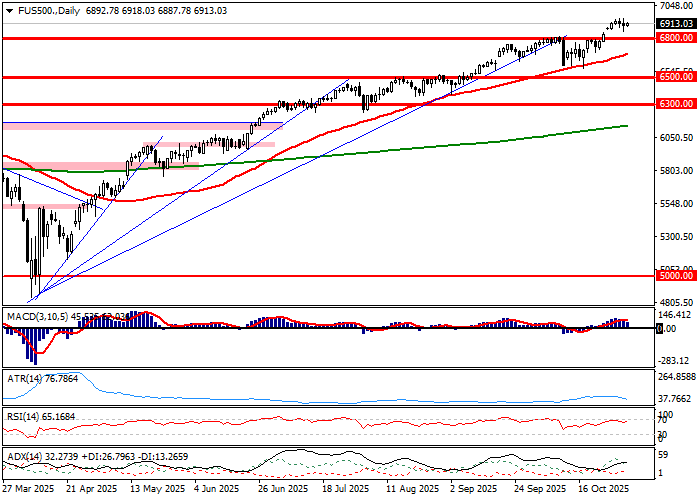 S&P500 skończył sesję czwartkową spadkiem o 0,99 procent, ale notowania piątkowe na rynku pochodnych sygnalizują niemal całkowite odrobienie strat przez indeks bazowy. Można zakładać, iż mimo wczorajszego spadku indeks nie odda też zwyżki w skali miesiąca, która po sesji czwartkowej wynosi 2 procent. Efektem będzie szósty miesiąc zwyżek w serii. Ponadto, mimo wczorajszego spadku trudno mówić o zmianie technicznej, gdyż rynek pozostaje w konsolidacji pod szczytem hossy. Spojrzenie na wykres CFD pozwala odnotować lokalną konsolidację po ruchy wyzwolonym impulsem związanym z pokonaniem oporów w rejonie 6700 pkt. i wybiciem z konsolidacji 6700-6500 pkt., które zbudowało potencjał zwyżki w rejon 6900 pkt. Rynek pozostaje zatem w grze o spotkanie z psychologicznym oporem na 7000 pkt. Problemem pozostają wskaźniki, których wysokie położenia znów będą zachęcały podaż do kontry w rejonie 7000 pkt., ale na chwilę obecną na wykresach nie ma przestrzeni do gry po krótkiej stronie rynku, więc gracze próbujący sprzedać 7000 pkt. będą operowali z blisko stawianymi zleceniami obronnymi. Szacując szanse byków na kontynuację wzrostów warto pamiętać o historii, która mówi, iż w okresie listopad-grudzień S&P500 rósł w około 70 procent przypadków i tylko w 30 procent kończył ten okres spadkami.