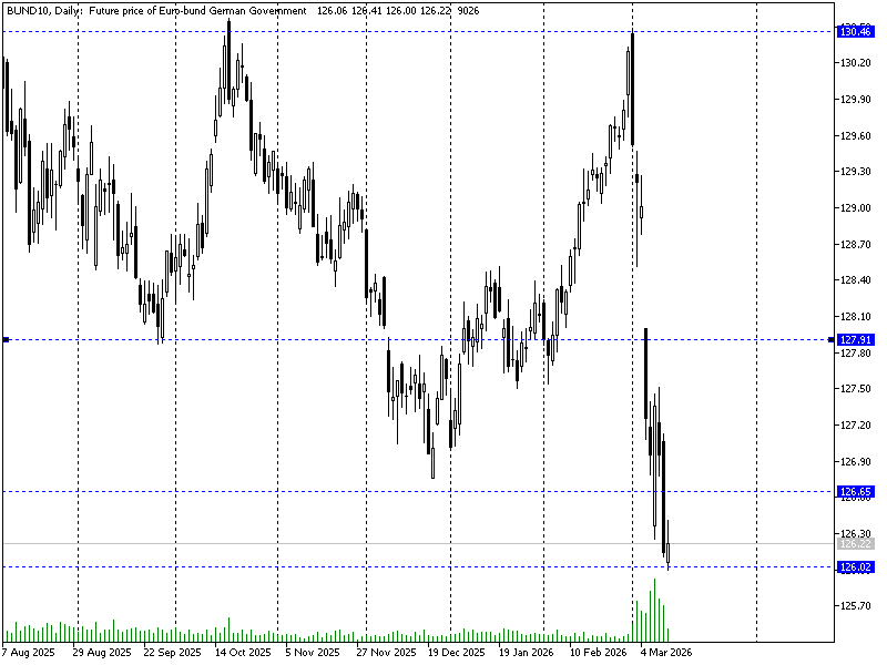 Po nieudanej próbie przebicia 130 pkt. kontrakty (kontrakty na koszyk cen obligacji 10YT) na niemieckie obligacje 10-letnie odnotowały dynamiczny spadek (-2,9%). Obecnie notowania testują okolice 126pkt, po sforsowaniu istotnego wsparcia w rejonie 126,65 pkt.
