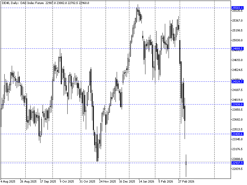 Futures na DAX'a spadają ok. 2,25% testując okolice wsparcie na 23k pkt. Sforsowanie tego zakresu (zamknięcie świecy dziennej) oznaczałoby sygnał wybicia dołem z konsolidacji na indeksie trwającej od maja 2025. Otwarcie nowego tygodnia przyniosło paniczne ruchy na indeksach w Azji oraz ponad 20% wzrosty cen ropy. Aktualnie trwa jednak odbicie na bazie doniesień iż G7 szykuje się do uwolnienia rezerw ropy naftowej. Szok podażowy porównywany jest już do 1970.Warto dziś śledzić notowania cen gazu i innych nośników energii, gdzie również tam najpewniej dojdzie do dużych zmian wyceny. Wyższe ceny nośników oznaczają potencjalnie wyższą inflację, a więc bardziej restrykcyjną politykę monetarną.