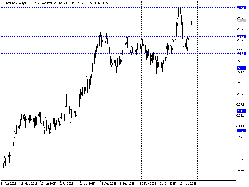 Futures oparte na Eurostoxx Banks (SX7E) ponownie wyraźnie zyskują, testując okolice 242 pkt. Z drugiej strony reakcja na krajowym sektorze (WIG-Banki) wydaje się być ograniczona. Z wykresowego punktu widzenia futures, po krótkiej konsolidacji nad 230pkt, kierują się ponownie w stronę oporu na 248 pkt. Zwyżki europejskich akcji tłumaczone są lepszymi nastrojami za oceanem oraz oczekiwaniami wobec pokoju UA_RUS.