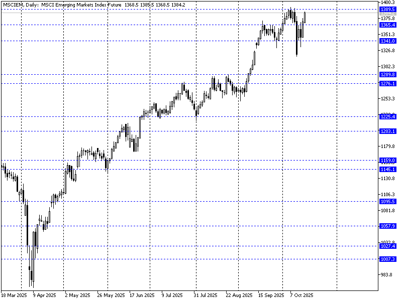 Rynek czeka na spotkanie Trump – Xi w Korei pod koniec miesiąca. Sama retoryka obydwu obozów pozostaje jednak dość agresywna, Nie przeszkadza to jednak we wzrostach na globalnych rynkach, gdzie zarówno indeksy/futures na Wall Street jak i MSCI EM kierują się pod ostatnie szczyty. Strefą oporu pozostaje 1390 pkt., będąc równocześnie testem szczytów z okolic 2020r.