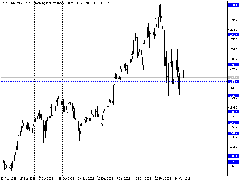 Inwestorzy pozostają w zawieszeniu – z jednej strony pozytywne doniesienia z Iranu (np. rozpoczęcie komunikacji przez pośredników ws. zawieszenia broni) nie powodują znaczących podbić sentymentu. Z drugiej negatywne informacje (Iran odrzucający zawieszenie broni na czas negocjacji) również nie wywołują znaczących ruchów. Cały sentyment opiera się obecnie na wycenie ropy – spadek cen Brent koreluje ujemnie z wyceną większości bardziej ryzykownych aktywów. W przypadku rynków wschodzących pozostajemy w lokalnej konsolidacji – wsparcie 1426, opór pod 1500 pkt.