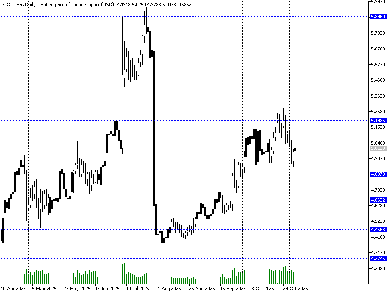 Futures oparte o notowania miedzi spot na COMEX pozostają blisko pełnego zakresu 5.0 USD. Wcześniej podjęta została próba wyjścia wyżej przez 5.2 USD mająca na celu wygenerowanie sygnału technicznego wybicia i ponownego testu zakresów zainicjowanych pierwszą reakcją na cła Trumpa (które docelowo stały się również przyczynkiem do późniejszego spadku). Pierwsze 2 próby okazały się jednak nieudane, a notowania ponownie powróciły w zakres konsolidacyjny na futures (4.84-5.2 USD).