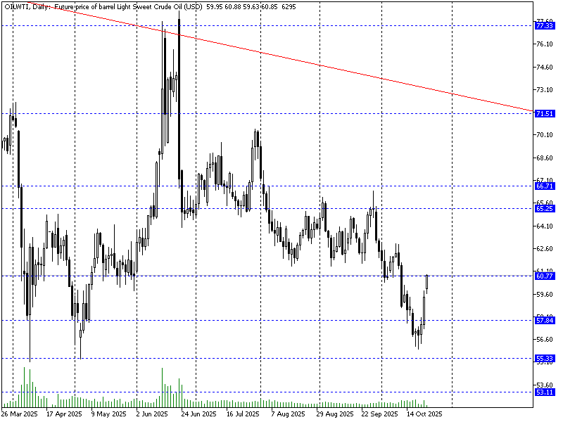 Notowania WTI i pochodnych testują okolice 60 USD, pomimo ciągle mocniejszego USD. Powodem są ponownie wydarzenia geopolityczne - Państwowe rafinerie w Indiach podały że analizują zakupy rosyjskich baryłek ropy, aby zapewnić, że dostawy nie pochodzą bezpośrednio z Rosneft i Łukoil po nałożeniu na nie amerykańskich sankcji.