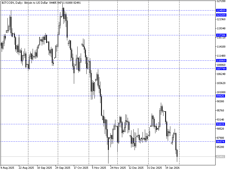 Najpopularniejsza kryptowaluta nie rosła w ostatnich czasie, kiedy na rynku panowały dogodne warunki i klimat do spekulacji. W konsekwencji przy trwających schłodzeniu obserwujemy ponowne zainicjowanie strony podażowej. Futures notują zniżkę do 82,5 k USD, zbliżając się do strefy wsparcia na 80-77k USD. Jej przekroczenie otwierałoby drogę do zejścia w kierunku 72,6k USD. a