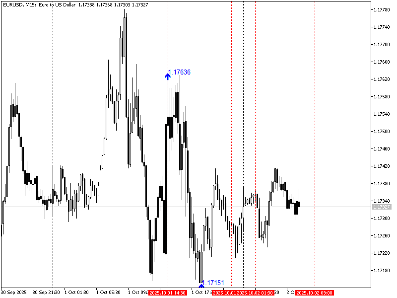 Sesja Amerykańska: W trakcie sesji w USA eurodolar cofnął się do okolic 1,1715 USD, co mieści się w ramach ostatniej konsolidacji. Amerykański „shutdown” podbija nieco popyt na złoto i papiery dłużne. Raport ADP (z rynku pracy) wsparł oczekiwania na 2 obniżki ze strony Fed do końca 2025.