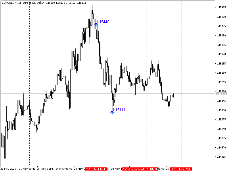 Sesja Amerykańska: W trakcie sesji w USA eurodolar cofnął się z okolic 1,1544 USD do 1,1511 USD. Rynek żyje kwestiami stóp procentowych w USA, gdzie po ostatnich wypowiedziach Williamsa wyraźne wzrosły szanse na grudniowe cięcia.