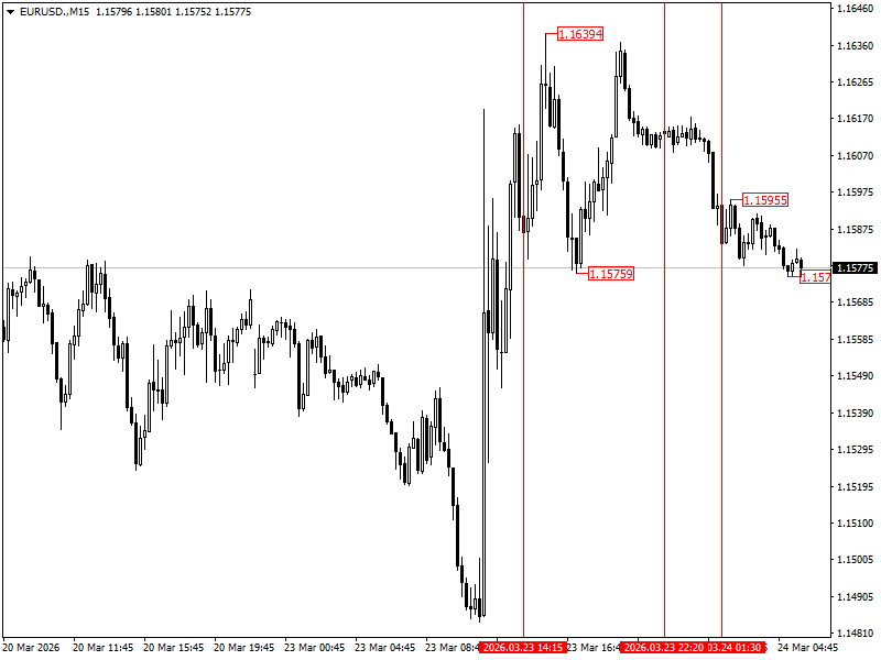 Eurodolar gwałtownie odbił z okolic 1.1481 do 1.1639, gdy Trump ogłosił odroczenie planowanego bombardowania irańskiej sieci energetycznej, powołując się na "produktywne" rozmowy z Teheranem — Iran jednak szybko zaprzeczył, że jakiekolwiek negocjacje się odbyły, gasząc entuzjazm rynku. Wall Street zakończyło sesję na plusie, ale futures już w nocy zawróciły na południe.
