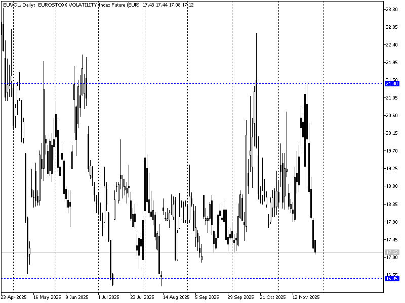 Pomimo relatywnych problemów bardziej ryzykownych aktywów (BTC czy akcje MSCI EM) europejski indeks „strachu” konsekwentnie spada obniżając relatywną premię za ryzyko na rynkach. Futures oparte o VSTOXX testują 17 pkt. Wsparciem są okolice 16,5 pkt a później zakresy 15,25 oraz 13,5 pkt. Jako kluczowy opór (często działający risk-off/on) widnieje 21,4 pkt.