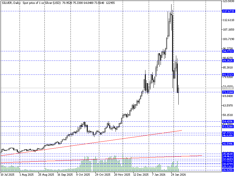Od szczytu w rejonie 121 USD notowania srebra zanotowały już ok. 47% spadku (wczorajsze minima 64 USD). Aktualnie trwa próba stabilizacji notowań – bazując na okolicach wsparcia 68-70 USD. Rynek pozostaje niezwykle zmienny i nerwowy, a dynamiczne ruchy na surowcach rzutują na podbicie układów risk-off na szerokim rynku. Aktualnie wydaje się iż inwestorzy poszukują miejsc do zajęcia pozycji długich licząc na korektę wzrostową.