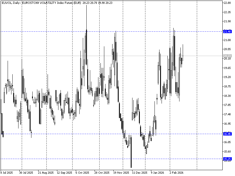 Futures oparte o VSTOXX (europejski VIX, czyli indeks strachu) pozostają w ciekawym miejscu. Inwestorzy czekają na otwarcie Wall Street ale depesze agencyjne sugerują w dalszym ciągu obawy o wpływ AI na modele biznesowe np. spółek software. Ogólny klimat inwestycyjny pozostaje więc ostrożny, tym bardziej iż futures na SPX pozostają nad niedawnym wsparciem na 6800 pkt. Ryzyko większej korekty unosi się nad rynkiem – ewentualne podbicie układów risk off oznaczałoby najpewniej wybicie zakresu 21,4 pkt na pochodnej VSTOXX (EUVOL).
