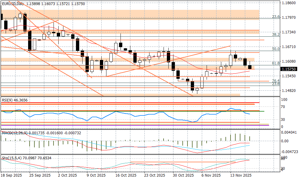 Technicznie dopuszczalne jest zejście EURUSD w okolice mocnego wsparcia przy 1,1541.