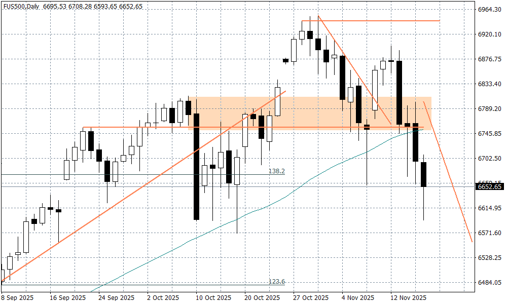 Zachowanie się dolara od wczoraj może sugerować, że silna wyprzedaż na Wall Street nie koreluje z walutą tak jak zazwyczaj. Teoretycznie kapitał może przesuwać się w stronę bardziej bezpiecznego długu, ale tutaj sytuacja nie zachęca do nadmiernych zakupów - rynek jest po średnioterminowym ruchu, a szanse na obniżkę stóp w grudniu na zasadzie 50/50 i cięcie oczekiwań rynku do jeszcze trzech obniżek w 2026 po 25 punktów baz. każda, mają tutaj spory wpływ. Trudno szukać w dolarze cech tzw. bezpiecznej przystani biorąc pod uwagę niestabilność polityki Trumpa - ryzyko negatywnego wyroku SCOTUS w sprawie ceł w najbliższych tygodniach.