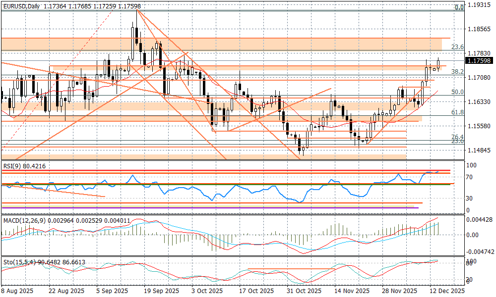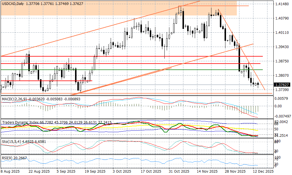 Dolar pozostaje słabszy przed jutrzejszymi, kluczowymi danymi Departamentu Pracy, które mogą wiele "naświetlić" w temacie dalszych perspektyw, co do ruchów FED-u na stopach procentowych w I półroczu 2026 r. Wahania na Wall Street wokół spółek technologicznych, które widać też dzisiaj, na razie pozostają bez wpływu na rynek FX. Na rynku surowców widać wyhamowanie zwyżek kontraktów na złoto, co ma miejsce przed historycznymi szczytami wokół 4400 USD (nie były ponownie testowane). Opublikowane dzisiaj po południu dane z USA przyniosły pogorszenie się regionalnego wskaźnika z Nowego Jorku (NY FED Mfg.), który spadł w grudniu do -3,9 pkt. Większą uwagę przykuły dane o inflacji CPI w Kanadzie, która w listopadzie wypadła nieco poniżej prognoz (2,2 proc. r/r). Nie zmienia to jednak oczekiwań rynku, co do ruchów Banku Kanady na stopach - przez najbliższe kwartały spodziewana jest ich stabilizacja (2,25 proc.) i ewentualna podwyżka o 25 punktów baz. mogłaby mieć miejsce w końcu 2026 r.