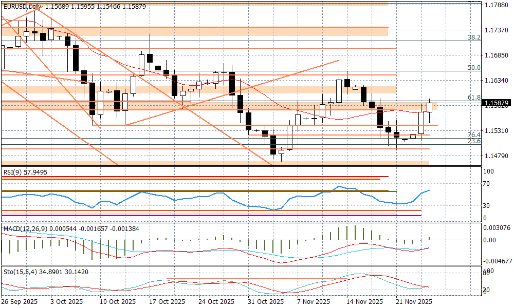 Para EURUSD może spróbować wyjść ponad opór przy 1,16. Kolejne istotne poziomy to okolice 1,1650.