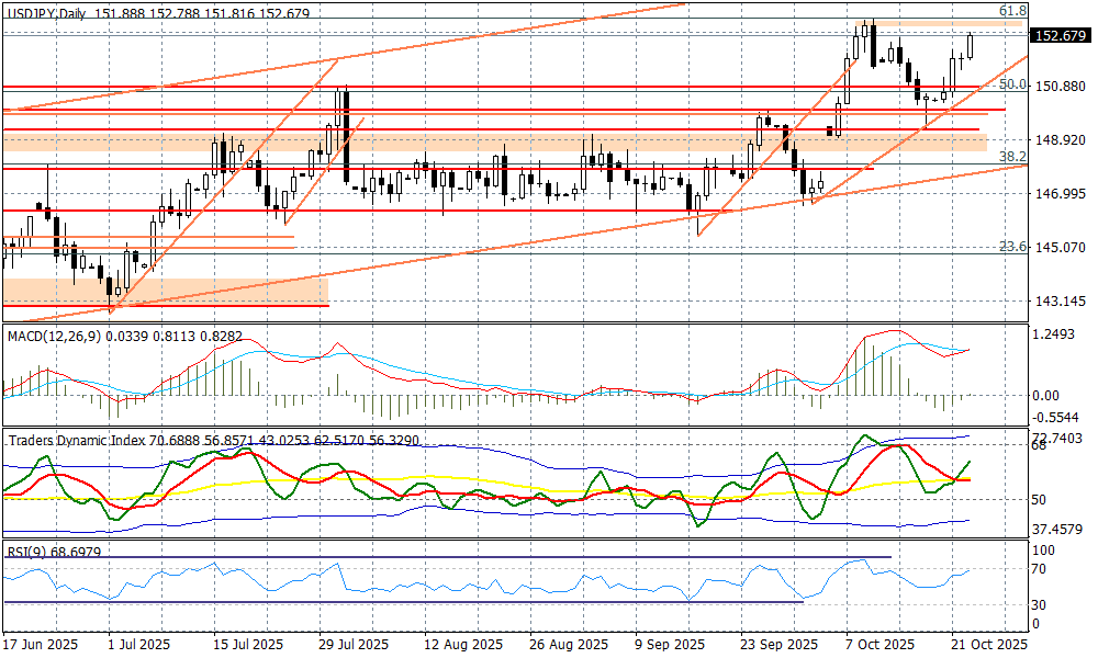 Nadal słaby jest jen, ale to widać na szerokim rynku (EURJPY, GBPJPY, AUDJPY itd.), choć koniec tygodnia może przynieść próbę realizacji zysków z tego ruchu. Technicznie na parze USDJPY mamy opór przy 153,27 (ostatnie maksima). Fundamentalnie - po pierwszej reakcji na propozycje fiskalnej stymulacji od premier Takaichi, rynek zacznie analizować szczegóły. W przyszłym tygodniu mamy posiedzenie BOJ, co będzie dobrym momentem dla analizy poglądów prezesa Ueda na ten temat. Jednocześnie dojdzie do spotkania Takaichi-Trump, które może pokazać jaka jest pozycja nowej premier i samej Japonii na globalnej mapie wpływów.