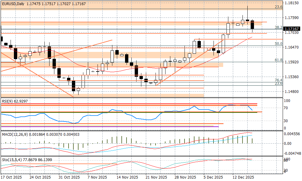 Wczoraj po słabszych danych z rynku pracy USA, para EURUSD sięgnęła poziomu 1,18, podczas kiedy dzisiaj rano zbliżał się do 1,17. Odczyty z USA nie były na tyle słabe, aby wpłynąć na prognozy rynku, co do cięć stóp przesz FED w I kwartale i tym samym pociągnąć mocniej w dół dolara. Tymczasem przed nami ważne dane o inflacji CPI - to już w czwartek - które będą ostatnim mocnym akordem makro w kalendarzu przed Świętami. Dodatkowo spadek notowań Kevina Hassetta w wyścigu do FED, również może mieć znaczenie - szef NEC, gdyby miał zastąpić Jerome Powella, to zostałby negatywnie odebrany przez rynki, inni już nie aż tak bardzo. W tle mamy też Wenezuelę, chociaż to wątek mogący mieć większe znaczenie dopiero za kilka tygodni.