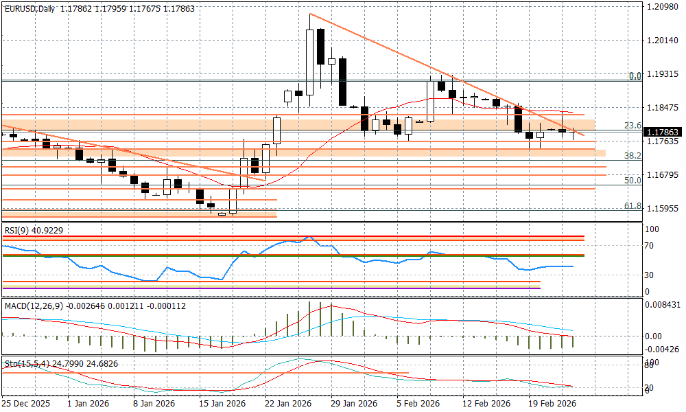 W zeszłym tygodniu rynek dostał niezłe dane PMI ze strefy euro (zwłaszcza Niemiec), które mogą zapowiadać idące ożywienie w gospodarce. Dlatego też rynki mogą reagować nerwowo na każdy sygnał, który może być zagrożeniem dla tego scenariusza. W poniedziałek Parlament Europejski zdecydował o zamrożeniu ratyfikacji umowy handlowej UE-USA, która była uzgodniona w końcu wakacji ub.r., a miała być zatwierdzona na dniach. Uzasadniono to tym, że USA nie przestrzegają zapisu o 'stabilności i przewidywalności taryf', co pokazują ruchy administracji USA z ostatnich dni po wyroku Sądu Najwyższego. UE obawia się, że nowe i kolejne cła zwiększą obciążenia ponad uzgodnione maksymalne 15 proc., a Trump nie daje gwarancji przestrzegania umowy. Taki ruch może spotkać się z odpowiedzią administracji USA, która może w takiej sytuacji poinformować o planach nałożenia nowych ceł na wybrane towary z UE w oparciu o sekcje 232, czy 301. To może otworzyć drogę do eskalacji wojny handlowej, na czym ucierpieć może EURUSD.
