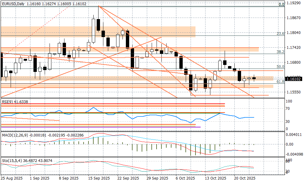 Szacunki dla strefy euro za październik w temacie indeksów PMI okazały się lepsze od prognoz, zwłaszcza po stronie usług, gdzie mamy ruch do 52,6 pkt. Mimo tego EURUSD nie zareagował zbytnio na dobre dane, co pokazuje, że dzisiaj kluczowa będzie inflacja CPI o godz. 14:30. Rynki będą zerkać zwłaszcza na wskaźnik CPI core, który we wrześniu najprawdopodobniej pozostał na poziomie 3,1 proc. r/r. Kluczowe dla pozycji dolara będzie jednak to, na ile wyniki rozmów Trumpa z Xi w przyszły czwartek, będą mogły przełożyć się na klimat inwestycyjny na Wall Street. Nadal mamy pozytywną korelację amerykańskiej waluty z rynkami akcji.