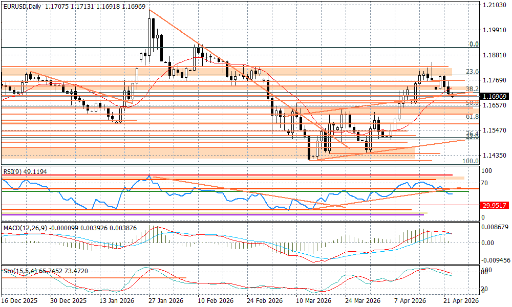 Para EURUSD zeszła poniżej 1,17 na fali silniejszego dolara na rynkach globalnych w kontekście obaw, co do ryzyka zerwania rozejmu podczas weekendu. Mieszane dane PMI ze strefy euro (słabe usługi w kwietniu) też nie są pomocne dla euro. Rynek obawia się, że przedłużające się perturbacje na rynku ropy mogą zacząć mocniej odbijać się na europejskiej gospodarce w kolejnych miesiącach.
