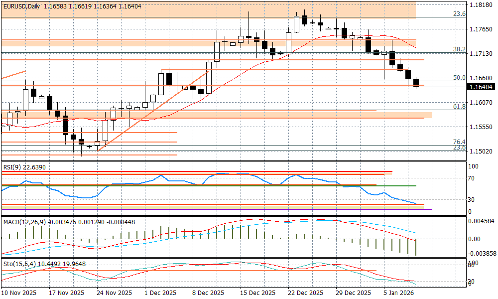 Para EURUSD zeszła jeszcze wczoraj poniżej dołka z poniedziałku przy 1,1658, potwierdzając tym samym trend spadkowy, jaki coraz wyraźniej rysuje się od kilku dni. Dzisiaj rynek narusza wczorajsze minimum (1,1642) i tym samym spadki są kontynuowane. Na tapecie mamy dwa kluczowe wydarzenia cenotwórcze - dane Departamentu Pracy USA o godz. 14:30 i potencjalna decyzja Sądu Najwyższego ws. ceł o godz. 16:00.