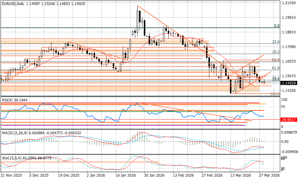 Na razie jednak schemat pozostaje ten sam - konflikt w Iranie nie zmierza w stronę końca, a możliwa eskalacja po Świętach Wielkanocnych może dać kolejne impulsy do umocnienia dolara. Technicznie zejście poniżej 1,15 wpisuje się w sygnały płynące z dziennych wskaźników - układy są spadkowe, co podbija scenariusz sprawdzenia okolic marcowego dołka przy 1,1410 w najbliższych dniach.