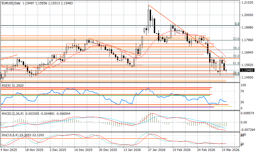 Analiza techniczna podpowiada jednak, że rysujące się dywergencje na wskaźnikach zmniejszają prawdopodobieństwo wyraźnego zejścia EURUSD poniżej dołków przy 1,15 w najbliższym czasie i lekko podbijają scenariusz wzrostowy na przyszły tydzień (odliczanie dni do zamrożenia irańskiej wojny?).