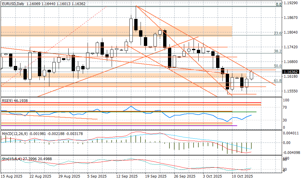 Jeszcze wczoraj spread pomiędzy 10-letnimi obligacjami Niemiec i Francji zaczął się wyraźniej zawężać po tym, jak szanse na utrzymanie się mniejszościowego rządu premiera Lecornu wyraźnie wzrosły (dostał on wsparcie od socjalistów). Obecnie jest to -78 punktów baz. wobec 86 punktów baz. ponad tydzień temu. Wyciszanie się wątku politycznego we Francji wspiera euro, ale bardziej są to sygnały od kolejnych członków Europejskiego Banku Centralnego, że obecna polityka monetarna jest właściwa i scenariusz ewentualnej obniżki stóp za kilka miesięcy nie jest brany pod uwagę. To w zestawieniu z "gołębio" odebranym Jerome Powellem robi swoje. Dolar traci na szerokim rynku, a EURUSD testuje dzisiaj linię trendu spadkowego.