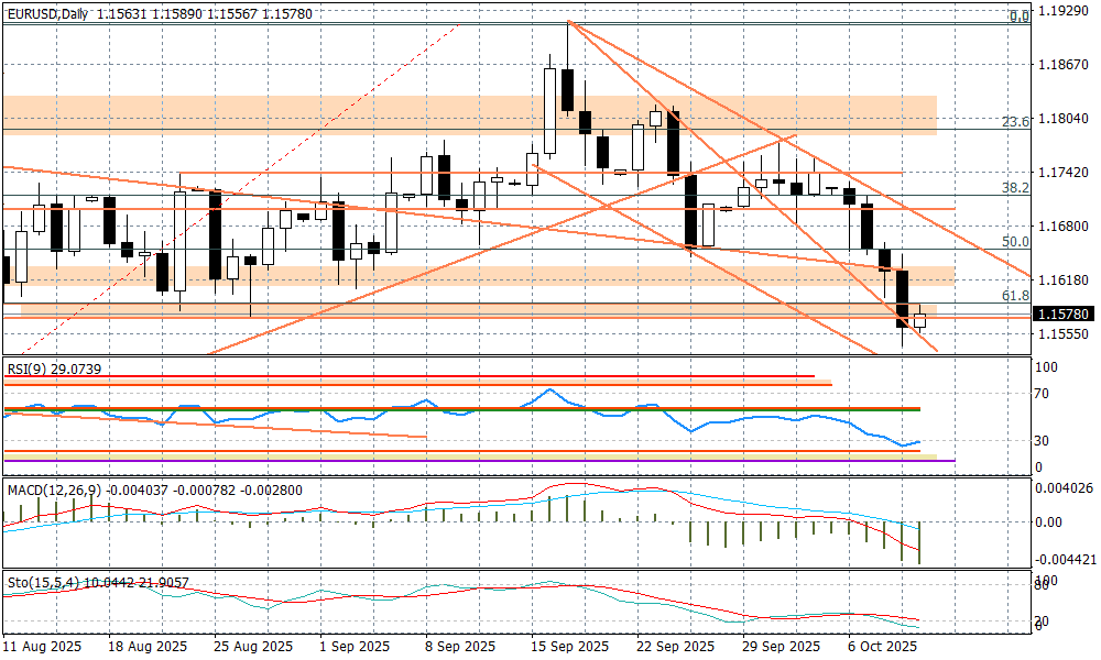 Wczoraj przez chwilę można było odnieść wrażenie, że risk-off na rynkach prowokowany przez działania Chin (obostrzenia w eksporcie metali ziem rzadkich) może dawać preteksty do umocnienia dolara. Taki scenariusz nie jest jednak pewny. Warto będzie obserwować reakcję Wall Street na kolejne wydarzenia na linii USA-Chiny, oraz wątek dotyczący goverment shutdown i danych makro z USA w przyszłym tygodniu. Technicznie możliwe jest odreagowanie EURUSD w okolice 1,1630-40 bez większego znaczenia dla zapoczątkowanego w połowie września podbicia dolara.