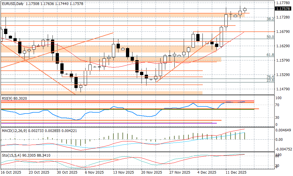 Para EURUSD zastygła w wyczekiwaniu na dane z USA o godz. 14:30. Dzisiaj nie udało się pobić wczorajszego maksimum przy 1,1768, na co wpływ mogą mieć słabsze szacunki indeksów PMI za grudzień w strefie euro, które napłynęły rano. Częściowo zostały one jednak przykryte przez bardzo dobry odczyt indeksu nastrojów ZEW z Niemiec, który liczony za bieżący miesiąc, wzrósł do 45,8 pkt. z 38,5 pkt.