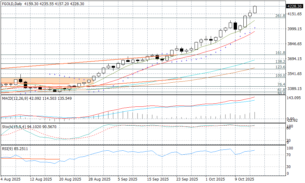 Futures na złoto rysuje dzisiaj kolejne ATH powyżej rekordowych 4200 USD. Argumentem za silnym popytem wydają się być obawy, co do negatywnego scenariusza rozmów USA-Chiny. Wczoraj szef USTR (Greer) przypomniał, że Donald Trump jeszcze nie zdecydował o tym, co zrobić z planem nałożenia 100 proc. ceł na Chiny od 1 listopada i wiele będzie zależeć od przebiegu rozmów. Tymczasem te posuwają się powoli, strony bardziej odpowiadają sobie złośliwościami - kwestia opłat w portach dla statków - a wczoraj rano strona chińska dała do zrozumienia, że poważne rozmowy nie mogą mieć miejsca dopóty USA podejmują kolejne działania na szkodę Chin. W tej rozgrywce zapoczątkowanej w zeszłym tygodniu to Pekin ma karty, a nie Waszyngton. Administracja Trumpa w tym momencie balansuje w temacie trudnej decyzji, jaką byłyby 100 proc. cła, gdyż uderzyłoby to bardziej w amerykańską, a nie chińską gospodarkę - na wiosnę to USA pierwsze zdjęły cła z Chin - co miałoby negatywny wpływ na wyniki wyborów połówkowych do Kongresu w listopadzie 2026 r. Jednocześnie taki ruch Trumpa pogrążyłby rynki akcji, odejmując mu kolejne punkty w sondażach.