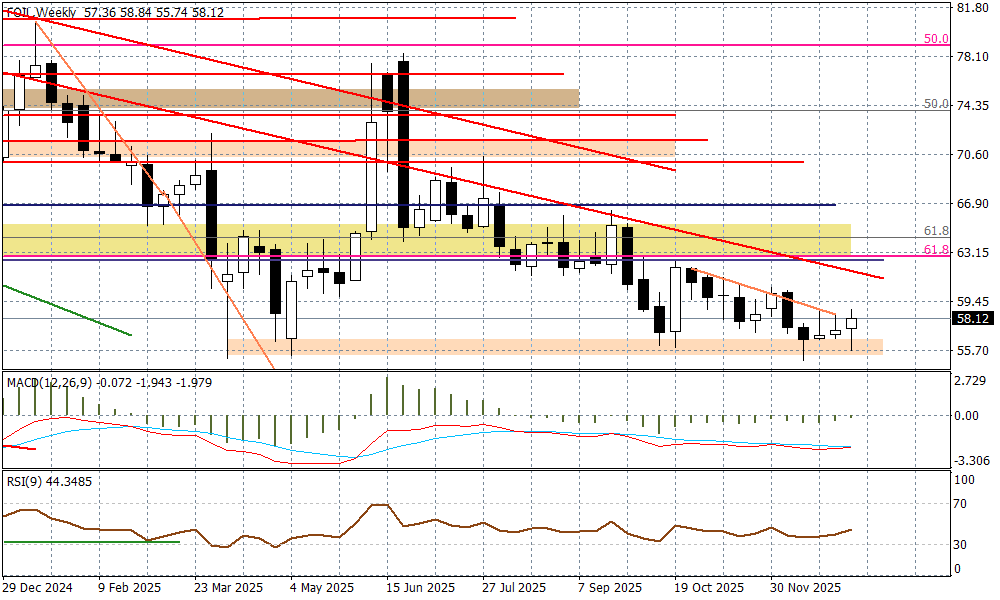 W dół, w górę, w dół, w górę - tak mniej więcej wygląda ostatni tydzień w notowaniach ropy. Poniedziałkowe spadki po akcji porwania Maduro przez amerykańskie służby specjalne zostały później zanegowane, po tym jak inwestorzy zaczęli się zastanawiać, czy to wystarczy do faktycznego przejęcia kontroli przez USA nad Wenezuelą i tamtejszą ropą. Później ceny poszły jednak w dół, po tym jak Donald Trump stwierdził, że USA będą jedynym pośrednikiem w sprzedaży wenezuelskiej ropy i polecił zakontraktować temat sprzedaży nawet do 50 mln baryłek surowca po cenach rynkowych. Dodał później, że środki z jej sprzedaży będą w dyspozycji USA i Wenezuela nabędzie za nie amerykańskie produkty... jakkolwiek miałoby to wyglądać. To wszystko odbyło się przy mocnym sprzeciwie Chin, które miały zakontraktowaną wenezuelską ropę opłaconą wcześniejszymi "pożyczkami" dla reżimu Maduro. USA wydają się jednak iść dalej za ciosem, realizując wyraźną strategię podcinania Chinom kluczowego podbrzusza dla wzrostu gospodarczego, jakim są dostawy surowców. Stwierdzenie Trumpa, że USA mogłyby interweniować w Iranie, aby bronić cywili demonstrujących przeciwko reżimowi Ajatollachów, to taktyczne zagranie mające pokazać, że USA mogą dążyć do zakłócenia dostaw ropy do Chin także z kluczowego Bliskiego Wschodu. Wątpliwe jest, aby to Amerykanie mieli interweniować, raczej stworzą pretekst do dalszych działań Izraelczyków, którym przewrót w Iranie byłby jak najbardziej na rękę. Oczywiście pytanie, na ile byłoby to realne, ale jeżeli odbyłoby się to bez uszkodzenia instalacji przemysłowych związanych z wydobyciem i eksportem ropy (tak jak to stało się w Wenezueli), to raczej nie powinno to zakłócić długoterminowych trendów spadkowych na tym surowcu. Wszak, po przewrocie irańskiej ropy na rynkach byłoby jeszcze więcej, bo zdjęte byłyby wszelkie obostrzenia, co do jej eksportu. W krótkim terminie rynek ma prawo jednak do grania "pretekstami", podobnie jak to zrobił w czerwcu ub.r. podczas konfliktu izraelsko-irańskiego. Finalnie jednak ropa była tańsza i to jeszcze przed ostateczną informacją o zakończeniu wzajemnych działań zbrojnych.