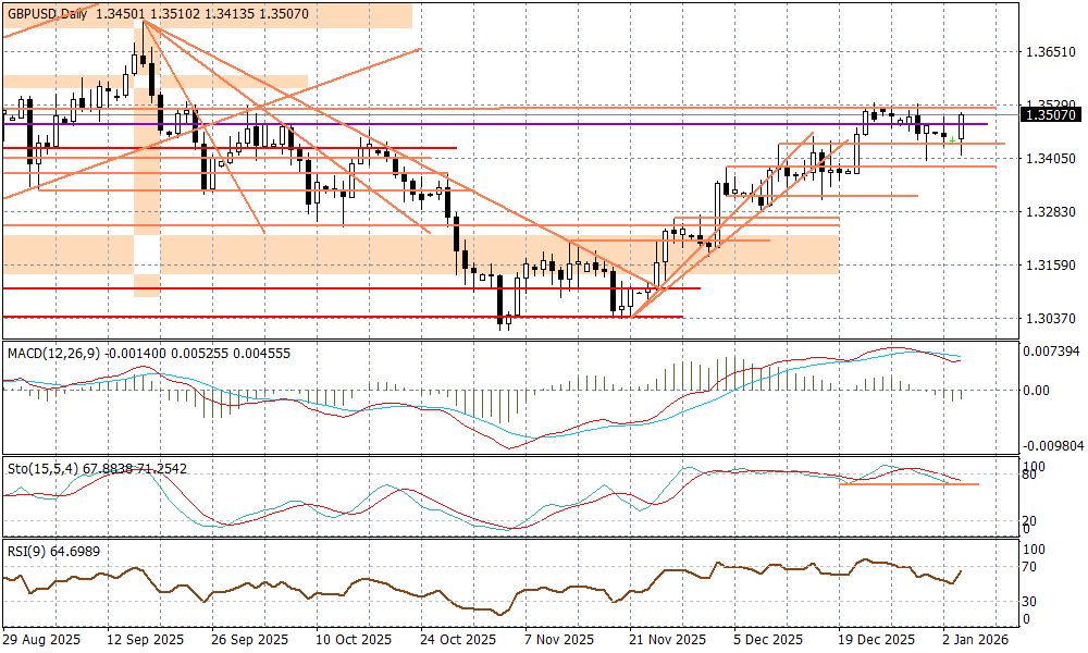 Słabsze dane ISM dla przemysłu za grudzień (cofnięcie do 47,9 pkt.) mogą podbijać oczekiwania, co do ruchów FED w I kwartale. Zmiana wobec mediany (48,3 pkt.) nie jest jednak duża i na razie to rynek bardziej reaguje osłabieniem widocznego od rana tempa aprecjacji wzrostu dolara. Część walut "obróciła" się nawet o 180 stopni na przestrzeni ostatnich kilku godzin. Należy do niej m.in. funt, który jest dzisiaj najsilniejszą walutą pośród majors, na co wskazuje też biała świeca na GBPUSD. Inwestorzy mogą pozytywnie odbierać fakt niskiego prawdopodobieństwa cięć stóp procentowych przez Bank Anglii przed kwietniem, o ile dane o inflacji nie pokażą jakiegoś mocniejszego jej spadku. Technicznie mamy podejście pod strefę ostatnich maksimów 1,3500-1,3530. W kalendarzu makro jutro mamy usługowy PMI z Wielkiej Brytanii - oczekiwania mówią o odbiciu do 52,1 pkt.