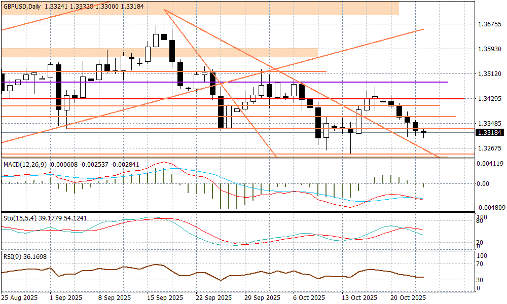 W tym tygodniu funt znalazł się pod presją za sprawą niższego odczytu inflacji CPI za wrzesień, która nasiliła spekulacje, co do cięcia stóp przez BOE w grudniu (nie na najbliższym posiedzeniu). Piątkowe dane przynoszą jednak pewne wsparcie - sprzedaż detaliczna przyspieszyła we wrześniu do 1,5 proc. r/r, a szacunki indeksów PMI przyniosły mocniejsze odbicie w październiku - do 49,6 pkt. dla przemysłu i 51,1 pkt. dla usług.