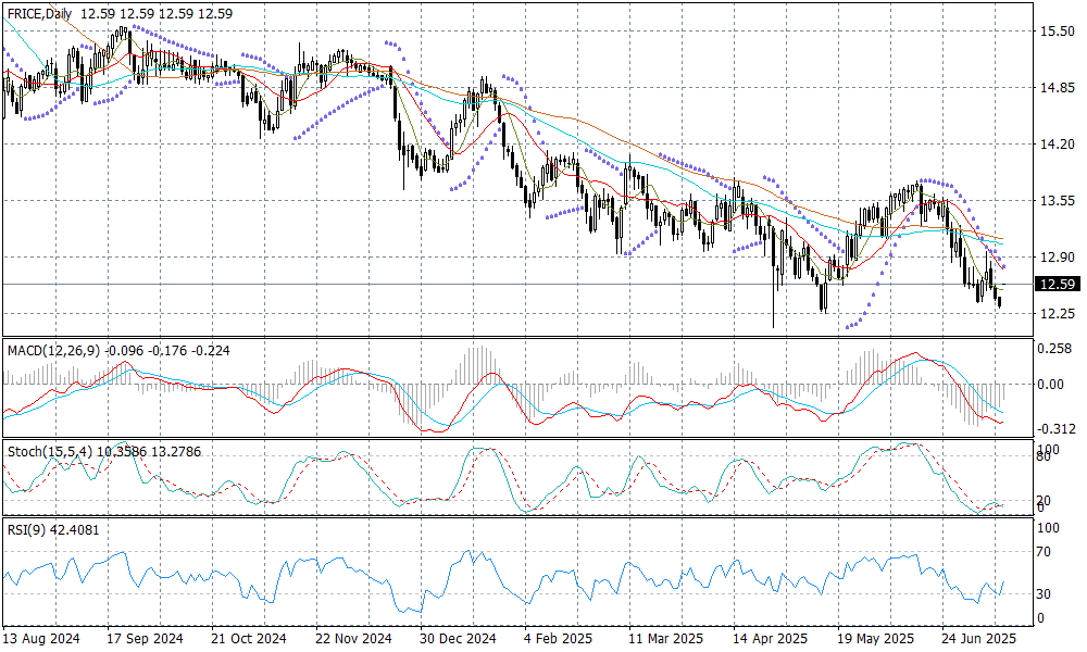 Notowania kontraktów na ryż są blisko tegorocznych minimów. Wpływ na to ma globalna nadpodaż tego towaru za sprawą rekordowych zbiorów w Indiach. W efekcie ma ona sięgnąć 556,4 mln ton. Jednocześnie rekordowe są mają być zapasy (prognozy mówią o 210 mln ton), co sprawia, że może być trudno o jakiś przełom w trendzie. Szanse na wykształcenie się formacji podwójnego dna na FRICE nie są, zatem zbyt duże.