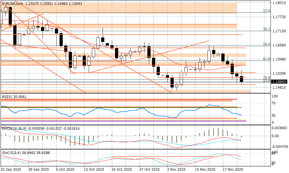 Wiceprezes FED, John Williams komentował dzisiaj perspektywy polityki pieniężnej. Jego zdaniem podejście pozostaje jednak "umiarkowanie restrykcyjne", co nie oznacza, że FED nie ma przestrzeni do dalszych cięć stóp procentowych na najbliższych posiedzeniach. W efekcie rynki powróciły do wyceniania grudniowego cięcia (ponad 60 proc. prawdopodobieństwa teraz) i za chwilę może pojawić się narracja, że FED stał się zakładnikiem rynków finansowych (brak obniżki sprowadzi dalszą silną przecenę). Dzisiaj indeksy na Wall Street kosmetycznie odbijają po wczorajszym załamaniu, ale nic poza tym. Poza Williamsem z FED agencje odnotowały dzisiaj wypowiedzi Collins i Logan, które można uznać za "jastrzębie". Tym samym mamy bardziej "fluktuacje" oczekiwań wokół grudniowej obniżki FED, które w zasadzie wiele nie znaczą. Dolar po południu jest ciut silniejszy.
