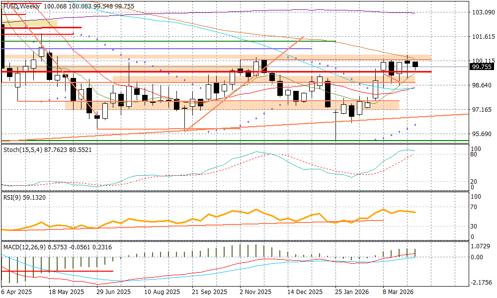 W ostatnich kilkudziesięciu minutach Donald Trump próbuje eskalować sytuację wokół Iranu, grożąc całkowitym zniszczeniem tego kraju dzisiaj w nocy po wygaśnięciu ultimatum, co podbija nerwowość na rynkach. Rynek walutowy reaguje jednak dość powściągliwie, dolar zyskuje ale nieznacznie. Ujęcie techniczne koszyka dolarowego (US Dollar Index) wskazuje na utrzymującą się konsolidację poniżej kluczowego oporu przy 100 pkt. Impulsem do jego wyraźnego wybicia byłaby eskalacja konfliktu na Bliskim Wschodzie przez Donalda Trumpa w najbliższych kilkunastu godzinach - rynki zdają się do końca bardziej preferować scenariusz TACO, czyli kolejnego uniku prezydenta USA w tej wojnie, choć szanse na osiągnięcie kompromisu wydają się być dość trudne.
