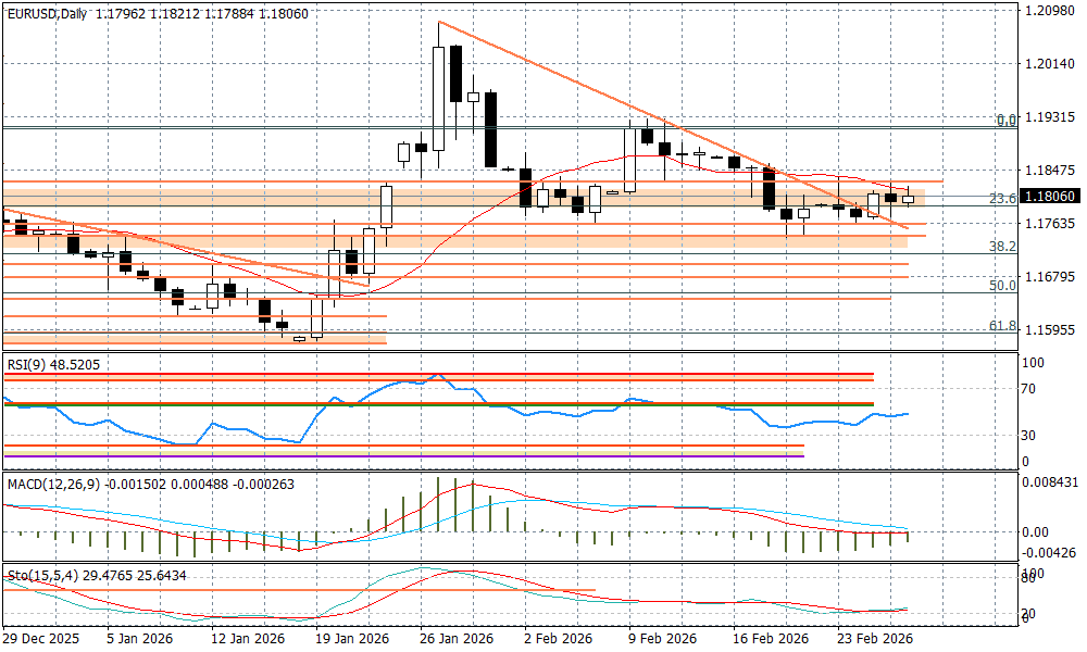 W przypadku EURUSD karty będzie rozdawać dolar, który będzie pod wpływem geopolityki. Technicznie czekamy na test okolic wsparć przy 1,1741-65.