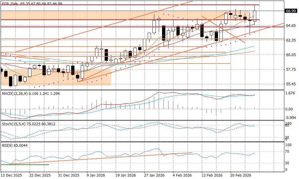 Z kolei na kontraktach na ropę mieliśmy dzisiaj atak na opór z ostatnich dni przy 67,26 USD, udało się go złamać, choć nie na długo. Na rynku widać jednak coraz większe obawy o to, czy w poniedziałek obie strony (tj. USA i Iran) rzeczywiście będą dalej rozmawiać - tym razem negocjacje na szczeblu technicznym, są zaplanowane w Wiedniu. Ryzyko militarnego rozwiązania jest coraz większe.